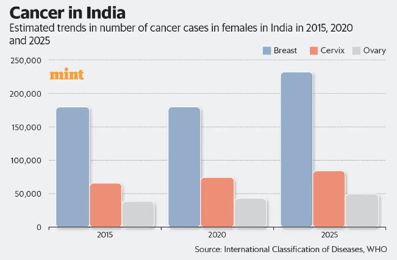 India finds itself at the center of this growing crisis. Breast cancer has overtaken cervical cancer to become the most common cancer among Indian women. In 2022 alone, India reported over 1.9 lakh new breast cancer cases, placing it among the countries with the highest incidence globally (Global Cancer Observatory – GLOBOCAN 2022). More distressing is the mortality figure: nearly one lakh Indian women died due to breast cancer in the same year. This high number of deaths reveals a harsh truth — in India, a diagnosis of breast cancer is far more likely to be fatal than in many developed nations.